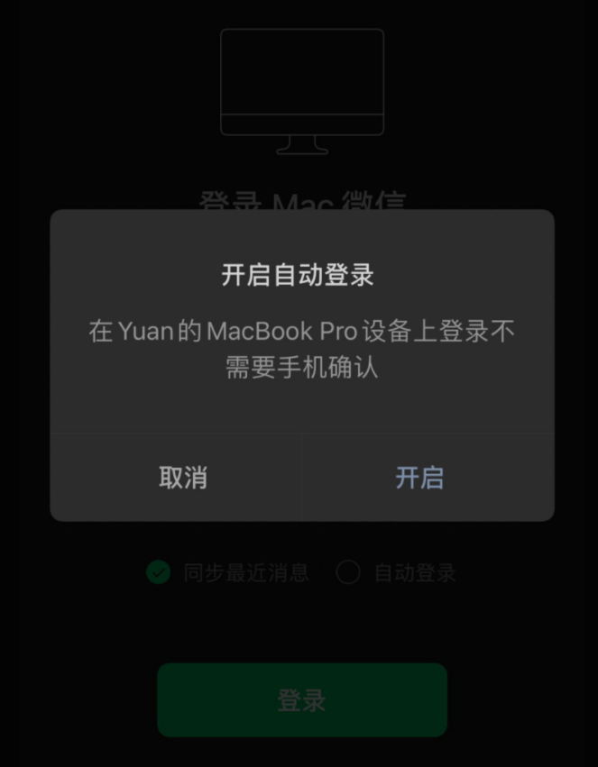据了解,用户首先需要在手机确认登录界面开启“自动登录”,之后的登录即可无需手机确认。此外,“自动登录”可以在手机端打开或者关闭,在 Mac 端,仅有关闭选项。