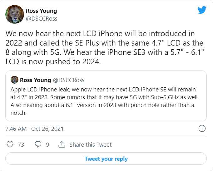 他表示,即将推出的 iPhone SE Plus 将采用与当前版本的 iPhone SE 2 相同的 4.7 英寸 LCD 显示屏,iPhone SE 2 本身采用此前 iPhone 8 显示屏尺寸。所有这些传言都表明,苹果正计划坚持采用 4.7 英寸的屏幕尺寸。