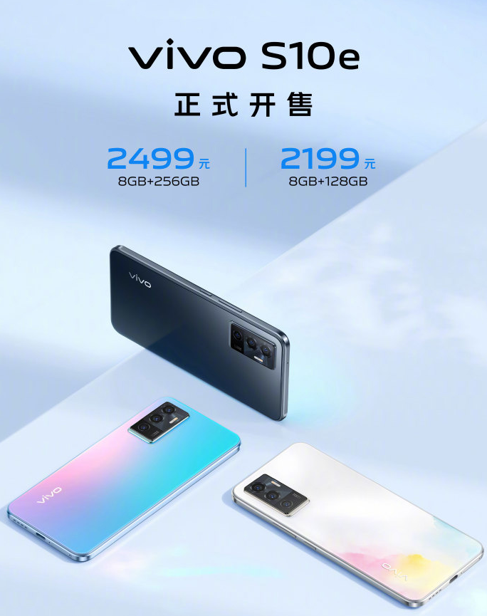 今天,vivo 官方表示,全新 vivo S10e 现已正式开售,8 + 128GB 版本 2199 元,8 + 256GB 版本 2499 元。