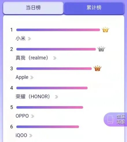 从销售额来看,销售额最高的三个品牌为苹果、小米、realme。