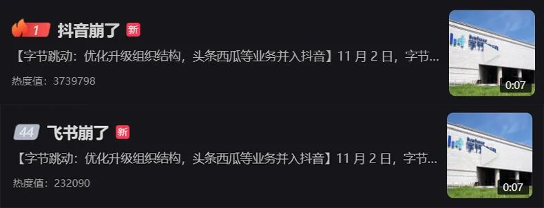 今日午间,“抖音崩了”“飞书崩了”登上微博热搜,网友纷纷表示内容无法加载,显示网络错误。