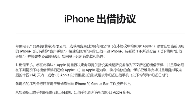 根据苹果的 iPhone 出借协议,用户可以在维修期间申请使用出借设备,但必须在收到维修设备可供取件通知后 14 天内归还出借设备。目前尚不清楚国行是否也更换为了 iPhone XR。(来源:新浪科技)