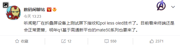 数码博主 @数码闲聊站 今日透露,他的消息来源表明华为正在为新一代折叠屏设备测试屏下指纹和 pol less oled 技术,预计新款 Mate X3(暂称)还会正常更替。