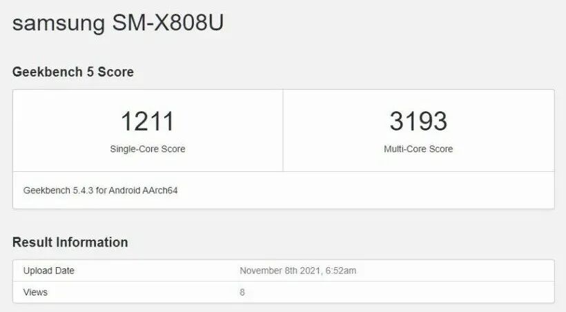 一款型号为 SM-X808U 的三星新设备出现在了 Geekbench 的数据库中,处理器参数信息曝光。