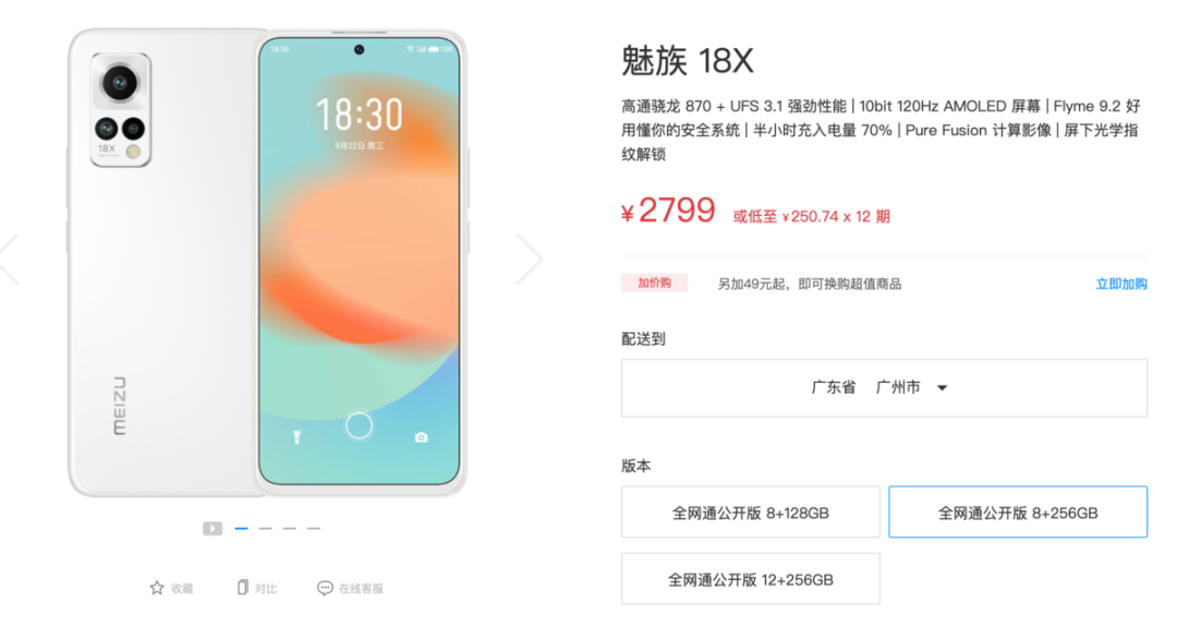 早在九月份魅族新品发布会上发布的魅族 18X「禅」配色,在今天正式开售。这也是今年唯一一款一体纯白机身的手机。