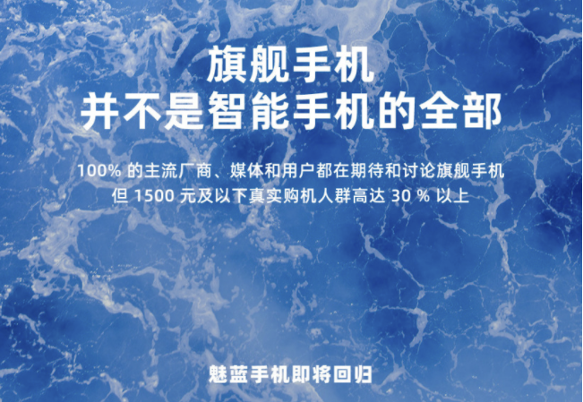 今日,魅蓝科技官方表示:“旗舰手机并不是智能手机的全部”,100% 的主流厂商、媒体和用户都在期待和讨论旗舰机,但 1500 元及以下真实购机人群高达 30% 以上,暗示将推出一款 1500 元及以下的手机。