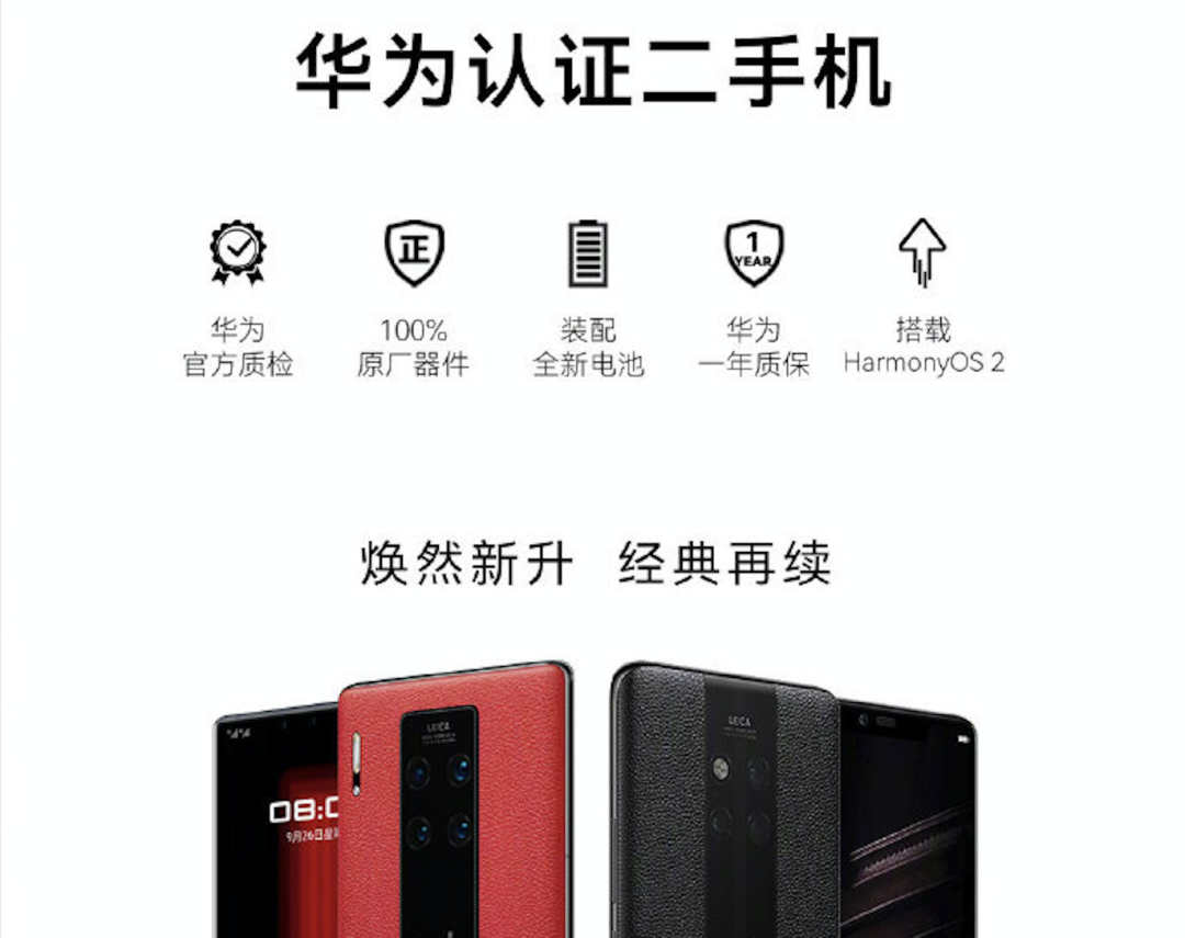 华为称,每款手机均搭载 HarmonyOS 2 系统,经过华为官方严格的质量和功能检测,保证华为原厂器件,并装配了全新原装电池,享受华为官方一年质保。(来源:IT之家)