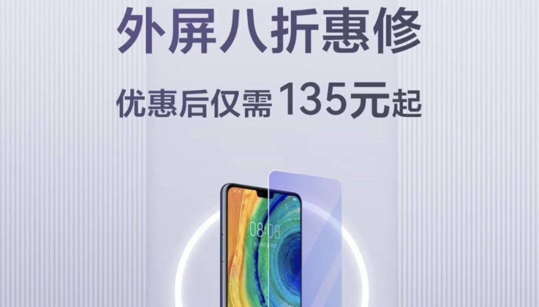 今日华为宣布,2021 年 11 月 11 日至 12 月 10 日期间开启手机外屏维修八折优惠活动。用户在华为指定的客户服务中心维修手机,均可以 135 元起的优惠价进行维修。