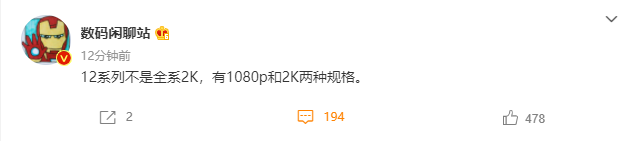 博主 @数码闲聊站 今日最新爆料,小米 12 系列并非全系都会配备 2K 屏幕,而是会根据具体型号分别配备 2K 和 1080p 两种规格的屏幕。