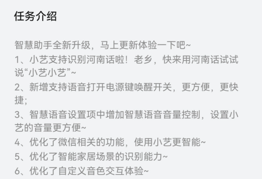 本次众测的智慧语音版本为 11.0.40.301,大小为 67MB。值得一提的是,新版本小艺支持识别河南话了。此外,智慧语音设置项中增加了智慧语音音量控制,微信相关的功能也得到了优化。(来源:IT之家)