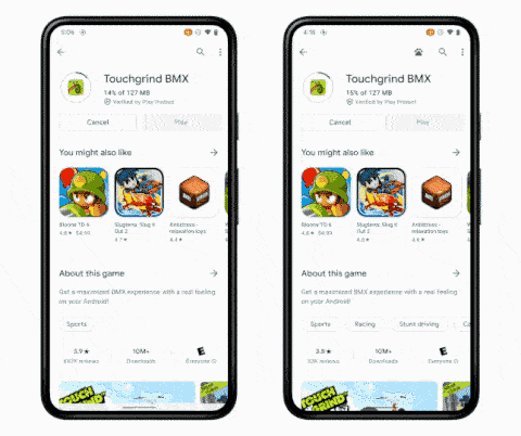 据悉,谷歌为安卓12推出了一项重磅功能,名为“play as you download(边下边玩)”,顾名思义,就是允许安卓游戏像PC、主机游戏一样,一边下载更新,一边进行游玩。