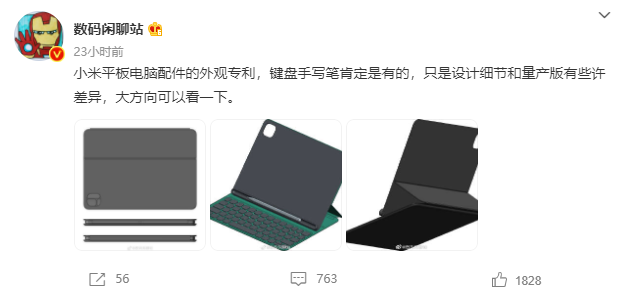 此外,有爆料博主还在昨日,曝光了小米新平板的配件外观专利图,包括键盘保护套、手写笔。从该博主提供的图中可以看到,小米平板5将后置圆角摄像矩形,边缘有触点,手写笔可以收纳在键盘保护套里。(来源:IT之家)
