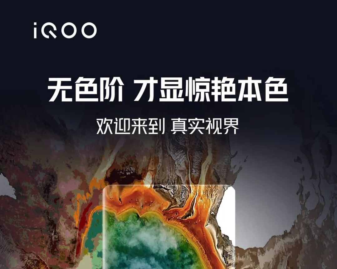 通过海报上的文字“无色阶 才显惊艳本色”我们可以猜测,新款iQOO手机的屏幕色彩程度将更加丰富、色彩过渡更自然,色彩还原能力也随之提高,很可能是10bit屏幕。如果属实,10bit屏幕将会比之前的8bit屏幕在显示大范围色彩过渡的时候表现更加自然。