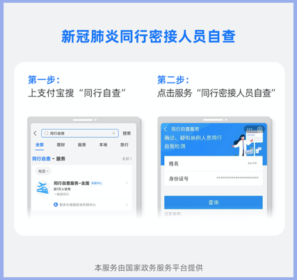 支付宝小程序上线新冠肺炎同行密接人员自查