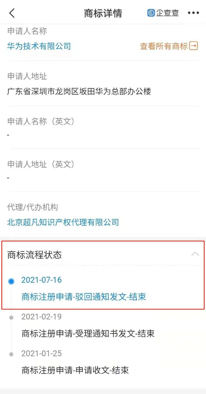 近日,华为申请的“姚安娜”商标流程状态变更为驳回通知发文结束,相关商标国际分类涉 25 类服装鞋帽、3 类日化用品等。