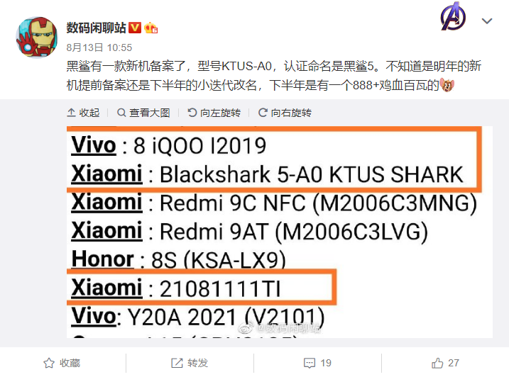 8 月 13 日消息 下半年的新机一部接着一部,现在轮到黑鲨游戏手机 5 系列有消息了。