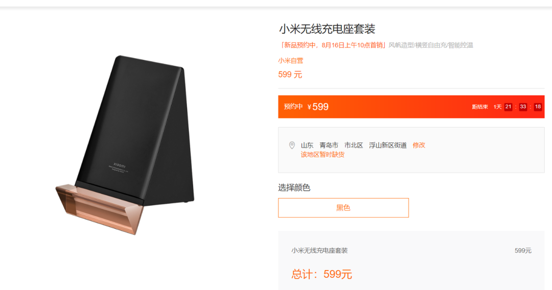 8 月 14 日消息,小米官网近期上架了小米无线充电座套装,风帆造型/横竖自由充/智能控温,显示新品预约中,8 月 16 日上午 10 点首销,售价 599 元。而这款无线充电座套装就是最新支持小米 MIX 4 100W 无线充电的设备,MIX 4 支持极速模式。