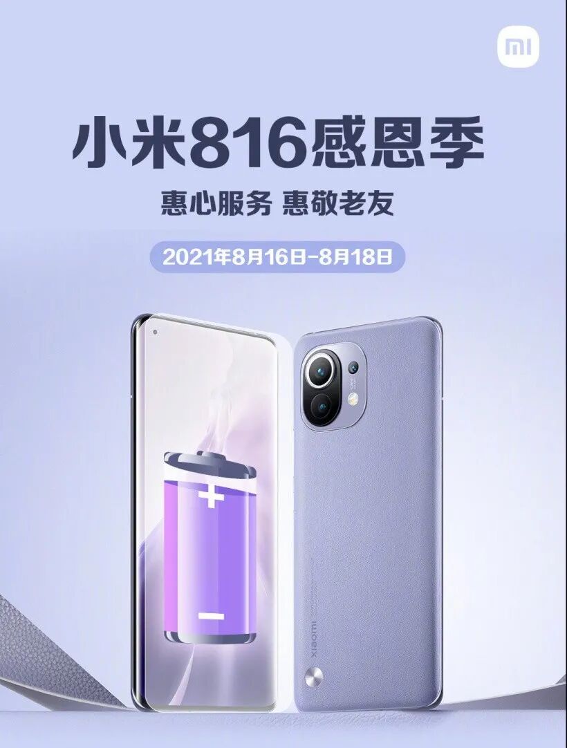 8 月 15 日消息,小米今日宣布又一项 816 感恩季活动。在 2021 年 8 月 16 日至 8 月 18 日期间,小米推出 49 元手机电池换新活动,支持机型达 48 款,用户可以到小米服务门店 & 销服一体门店进行更换,同时支持寄修。