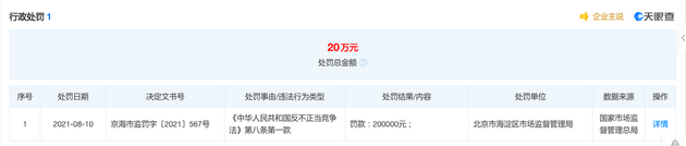 近日,快手磁力聚星关联公司北京晨钟科技有限公司新增了一项行政处罚。