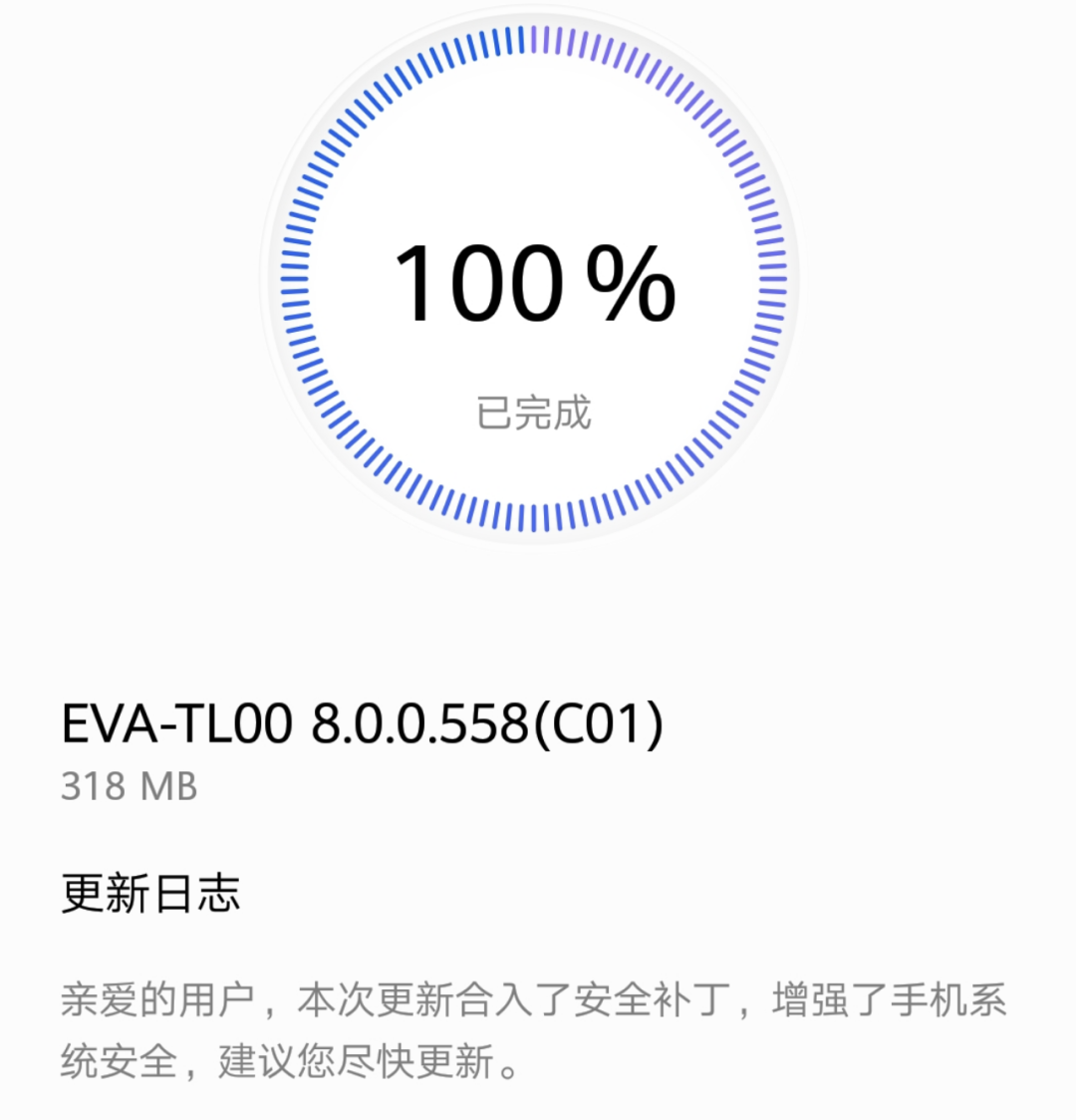 据网友反馈,华为 P9 手机近期迎来了 EMUI 8.0 系统 EVA-TL00 8.0.0.558 (C01),大小 318 MB,官方日志显示,本次更新合入了安全补丁,增强了手机系统安全。