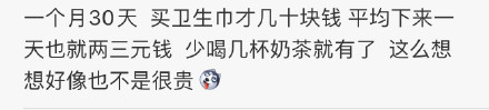 “买卫生巾才几十块钱,少喝几杯奶茶就有了,这么一想也不贵啊!”