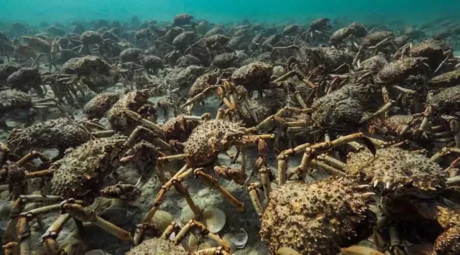比利时根特大学的科学家们使用潜艇在南极洲近海大陆架发现了不少于100万只帝王蟹,对于有密集恐惧症的人来说,这是一幅不堪入目的景象。