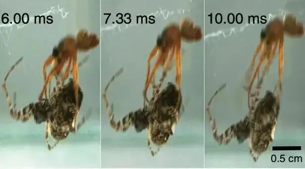在已有的观察记录中,最多的一次,一只公蜘蛛在一次交配过程中就进行了6次弹射。不过,并不是所有的蜘蛛都有隆喜蟱蛛这般本领,因为这不仅需要身体硬件的支持,还需要用敏锐的洞察力来帮助它们时刻保持警惕,所以大多数的蜘蛛更倾向于像螳螂那样做好事先预防。