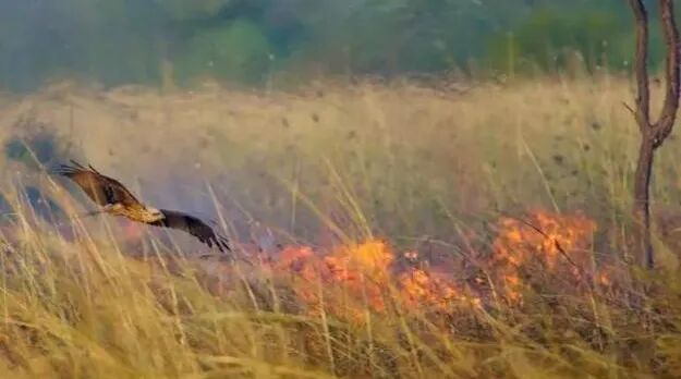 黑鸢纵火捕猎的情形并非偶然为止,目前记录在案的黑鸢纵火案件就达到了数十起,这侧面说明了黑鸢是一种学习能力极强的鸟类。自然火灾导致动物奔逃的情形,很多肉食性鸟类都看到过,但能够从这种现象中学会纵火捕猎的却只有以黑鸢为首的个别猛禽,这的确是非常了不起的事情,所以如果要是评选自然界中最不怕火的动物,我觉得应该给黑鸢投上一票。碳基生命的身体都怕火,但只要学会了如何控制和使用火,精神层面的恐惧就会消失,可见无论是动物还是人类,恐惧的根源并不在于事物的本身,而是在于这件事物是否可控。