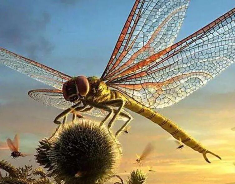 在地球历史上,的确有过一段高含氧量导致生物体型疯长的时代,那就是石炭纪。当今地球大气的氧气含量大约为21%,而在石炭纪,氧气含量则高达35%,所以在这一时期,翼展接近一米的巨脉蜻蜓以及体长在3米以上的蜈蚣登上了历史的舞台。