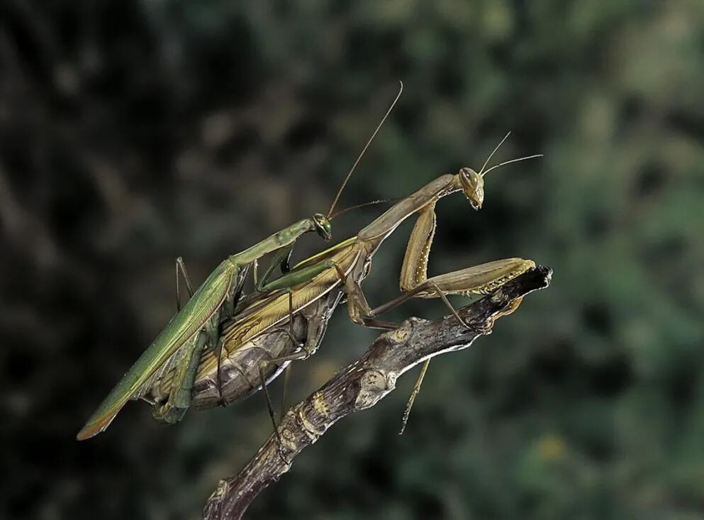 雄性一成亲就丧命,雌性一成亲就守寡,难道螳螂的婚姻注定只能是一场悲剧吗?雌螳螂在繁衍完成之后会吃掉雄螳螂,而雄螳螂也甘心被雌螳螂吃掉,这一切是真的吗?这样的情况无论是在自然界中,还是在实验室中,都是真实发生的,但与我们所知的有所不同。首先,雌螳螂吃掉雄螳螂的行为并不是在繁衍完成之后才发生的,除非雌螳螂在繁衍完成之后才察觉到这一切。一般而言,雌螳螂会在繁衍过程中把雄螳螂吃掉。如此这般,螳螂家族还如何繁衍呢?不用担心,这并不会影响到种族的延续。