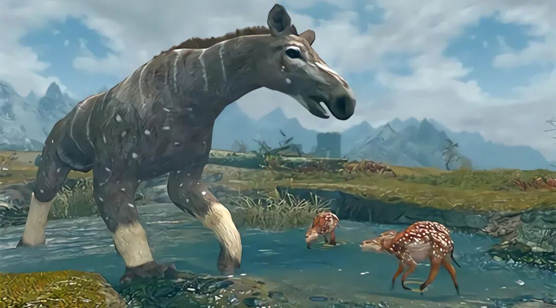 在大约5000万年以前的地球上,生存着一种体型巨大的生物,但从外形上来看,你很难将它与马联系在一起。说到马,你可能想到的第一个特征就是“跑得快”,而这种远古生物显然是跑不快的,因为它是个长短腿,前腿长,而后腿短,且差异十分明显。这种前腿长而后腿短的生物,其实并不稀奇,因为动物园中有一种小朋友最喜欢的动物就是这副模样,它就是长颈鹿。没错,单从形体上来讲,这种远古生物与长颈鹿很像,不过它与长颈鹿并没有什么亲缘关系。