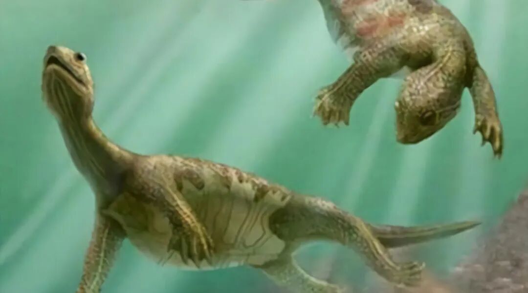 人类最早发现半甲齿龟的化石是在我国贵州的关岭,这种生物被称为之所以被命名为“半甲齿龟”,一方面是因为它只是腹部拥有甲壳,而背部没有,另一方面则是因为它还保留着牙齿。