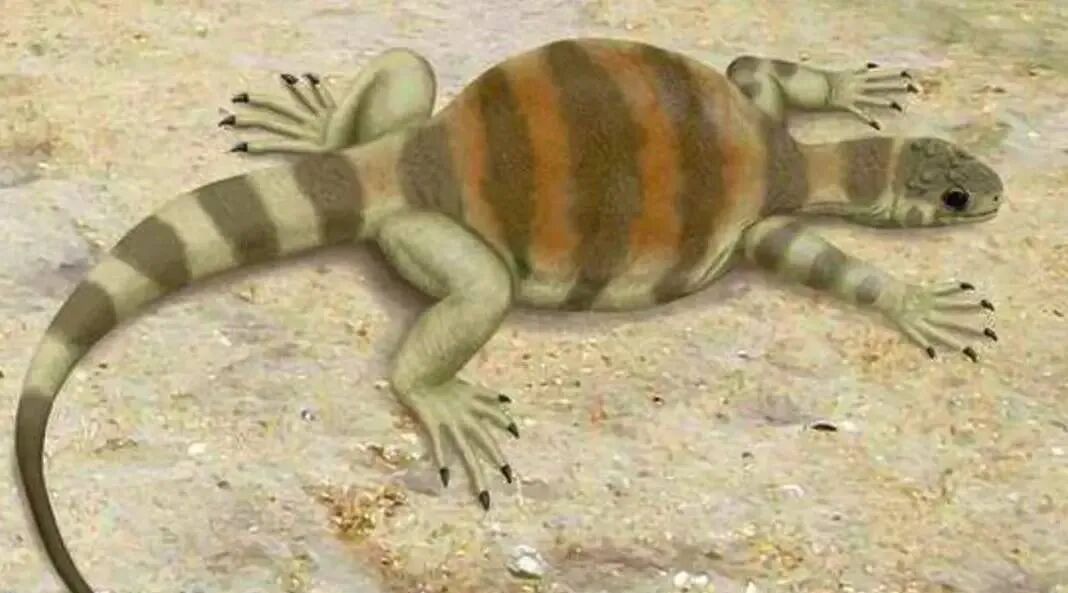 乌龟的演化之路上到底发生了什么呢?这还要从距今2.8亿年以前的二叠纪时期说起。在二叠纪时期,生活着一种古生物,我们称其为“正南龟”,虽然它的名字中有“龟”字,但它的外形却完全没有我们所熟悉的龟的样子。这是一种肋骨宽厚的爬行动物,而通过其宽厚的肋骨以及前肢的形态可以断定,这是一种善于挖掘的动物,这是因为宽厚且扁平的肋骨有利于降低身体的中心,从而方便挖掘。不知是什么原因,正南龟本就宽厚的肋骨逐渐变得越发宽厚,慢慢地,锁骨发生了闭合,形成了一种类似乎乌龟腹甲的构造,而这种生物就被称之为“祖龟”。