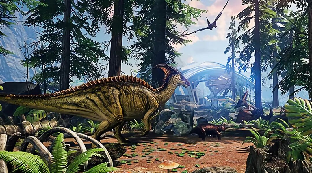 在诸多的食草恐龙之中,副栉龙算是猎食者比较难以得手的猎物了,它们的皮肤可以像变色龙一般与周围的环境融为一体,这让猎食者很难发现它们,而且它们并没有因为自己的保护色而沾沾自喜,它们警惕性非常高,而且非常敏锐,只要周围的环境稍有异样,它们马上就会逃离,这使得肉食恐龙很难靠近它们。