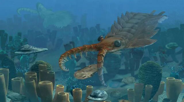 地球海洋中出现的第一代霸主应该算是奇虾了,奇虾诞生于寒武纪,是地球生命史上第一批进化出眼睛的生物,在大多数生物都还未进化出真正意义上的眼睛的时代,率先拥有了眼睛就等于拥有了极大的优势,于是奇虾迅速发展,很快就称霸了寒武纪的海洋。从外观上来看,奇虾身披铠甲,前端长有布满32颗尖刺的捕食附肢,看起来攻守兼备,但实际上实力却仍旧有限。奇虾虽然可以称霸寒武纪,但与后来出现的海洋霸主相比就略逊一筹。