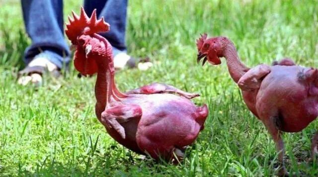 鸡虽然好吃,但杀鸡并不容易,特别是拔鸡毛的过程,十分繁琐,先要容热水烫,然后再一根根往下扥,而且烫鸡毛的水温还很有讲究,如果使用开水,毛孔收缩反而不容易往下拔,因此还得把水温控制在80度左右。所以凡是在家里负责杀鸡做饭的人都有这样的一个想法:“鸡要是没有毛就好了”,别说,美梦还就成了真,以色列科学家就培育出了一种无毛鸡,这种无毛鸡虽然长得跟个外星生物似的,可绝对不是转基因产品,没有经过任何基因编辑,完全是采用最简单的人工培育的方式而获得的。