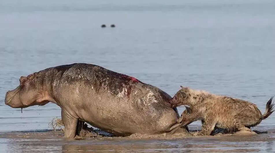 一旦猎物没有了力气,再也跑不动了,斑鬣狗便会对猎物发起群体攻击,而其中最致命的就是对猎物肛门的致命一击。