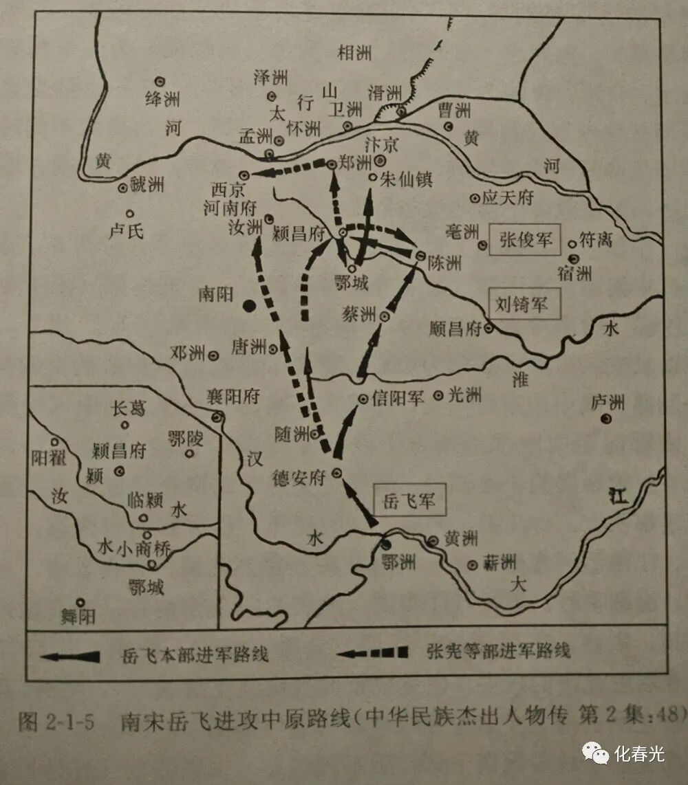 从岳家军的进军路线上,我们也可以看出,当时岳飞的主要精力是收复中原。他曾收复建康(江苏南京)、襄阳六郡(湖北襄阳)、商州(陕西省商洛市)、虢州(河南卢氏县)、郑州、洛阳等地,又在郾城(河南漯河市)、颍昌(河南许昌市)大败金军。