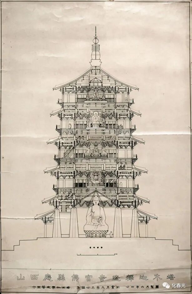 经历千年的风雨、地震、炮火,应县木塔依旧傲然挺立,这里面蕴藏着无可估量的建筑价值,难怪梁思成见到它后会如此激动。他与自己的弟子——清华大学建筑工程系教授莫宗江,花了整整两个星期进行测绘。
