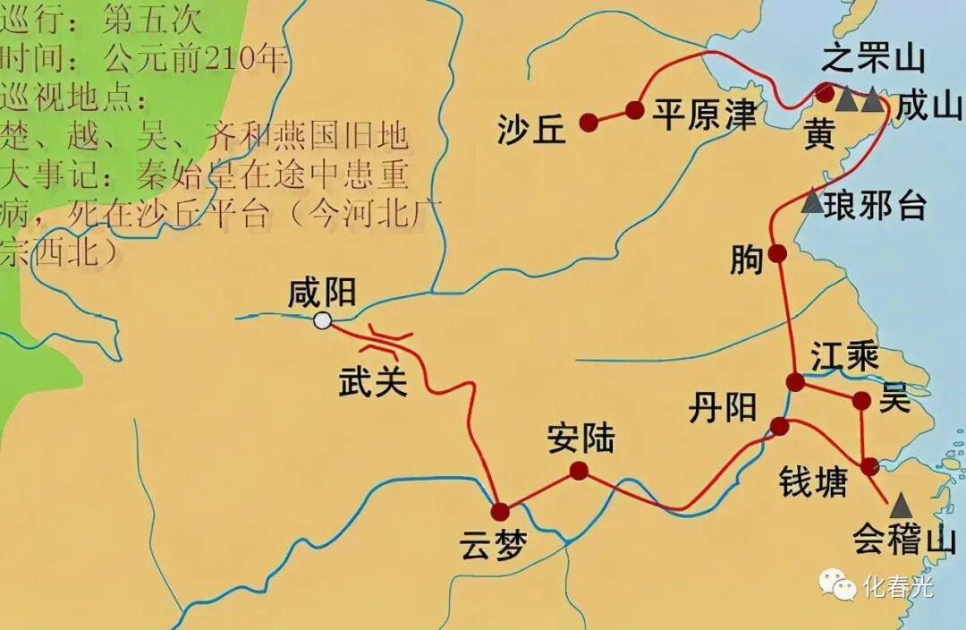 在秦始皇最后一次巡游时,其身体情况不是太好,走到平原津(山东德州平原县西南)时就已生病。然而,大家都知道秦始皇是个“讳疾忌医”的人,谁也不敢多说,一来二去就把病给耽误了。