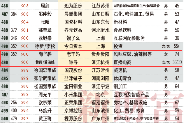 今年2021新财富500富人榜上,年仅36岁的薇娅(黄薇)和她丈夫以90亿元的财富上榜。