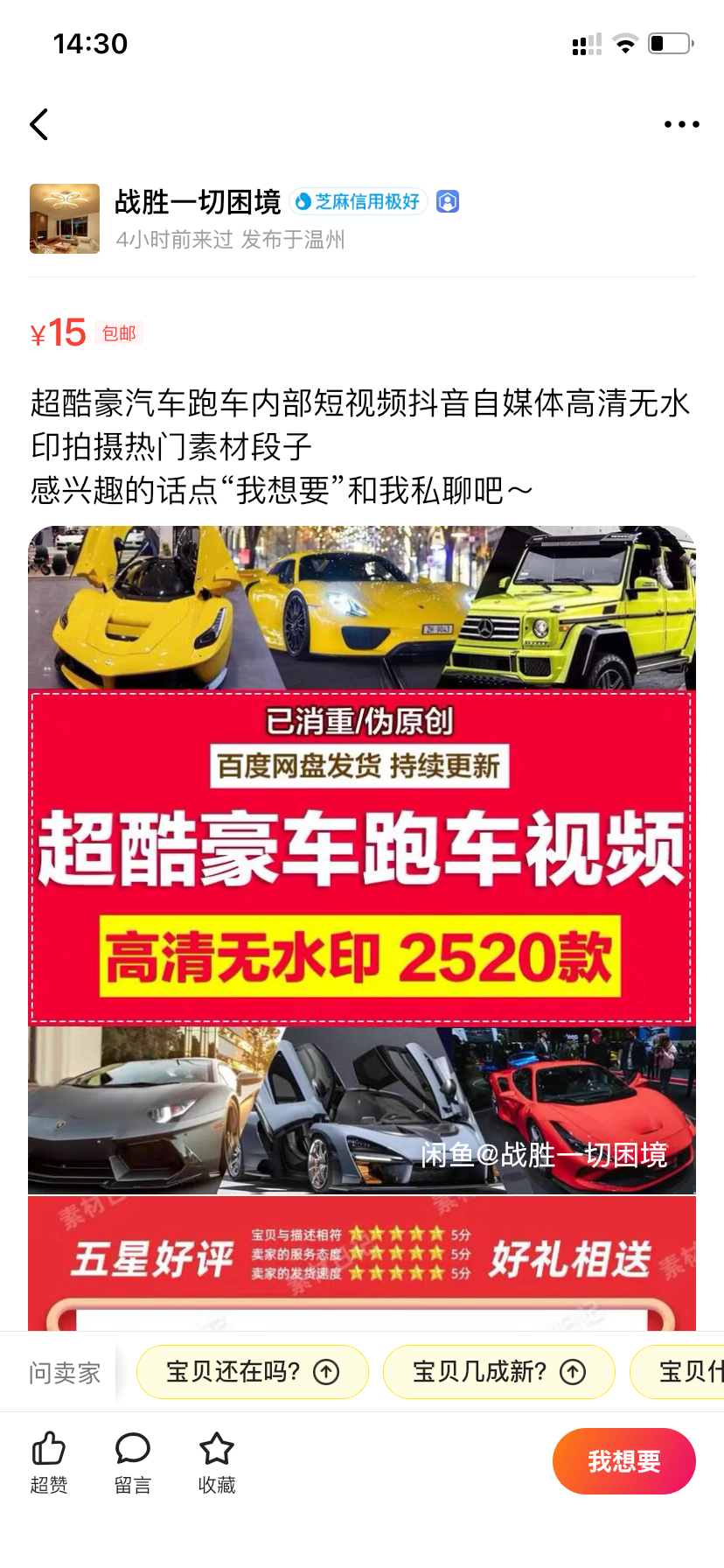 当下炫富的需求,已经大到形成一个灰黑产供应链。随便花15块钱,就能买来高清无水印的豪车视频素材。随手再拿来钓鱼设局,为执法部门创造KPI。