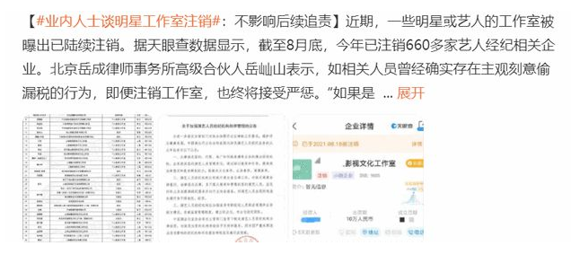 而曾为隐蔽偷漏税而存在的明星工作室,今年已经注销了超600多家。