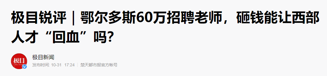 今年引发争议的鄂尔多斯60万年薪招聘教师,回应者寥寥,就说明一座城市的潜力和未来,才是年轻人真正看重的。