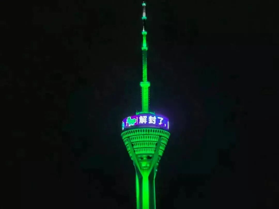 为庆祝解封,成都地标特意打成绿色,希冀赋予这一时刻更多仪式感。
