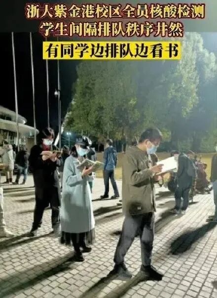 能考进浙大这样的国内王牌名校都是学霸,所以大家不愿浪费时间,一边等测核酸,一边温书。