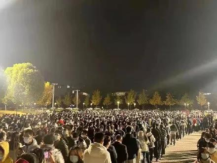 很多学生本来已经入睡,为了不给集体拖后腿,还是爬起来去测核酸现场排队。