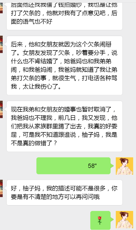 以下是和女主的聊天记录截图,这件事,柚子妈不做太多的评价,今天的评论区交给你们,柚子妈想听听你们的看法哦~