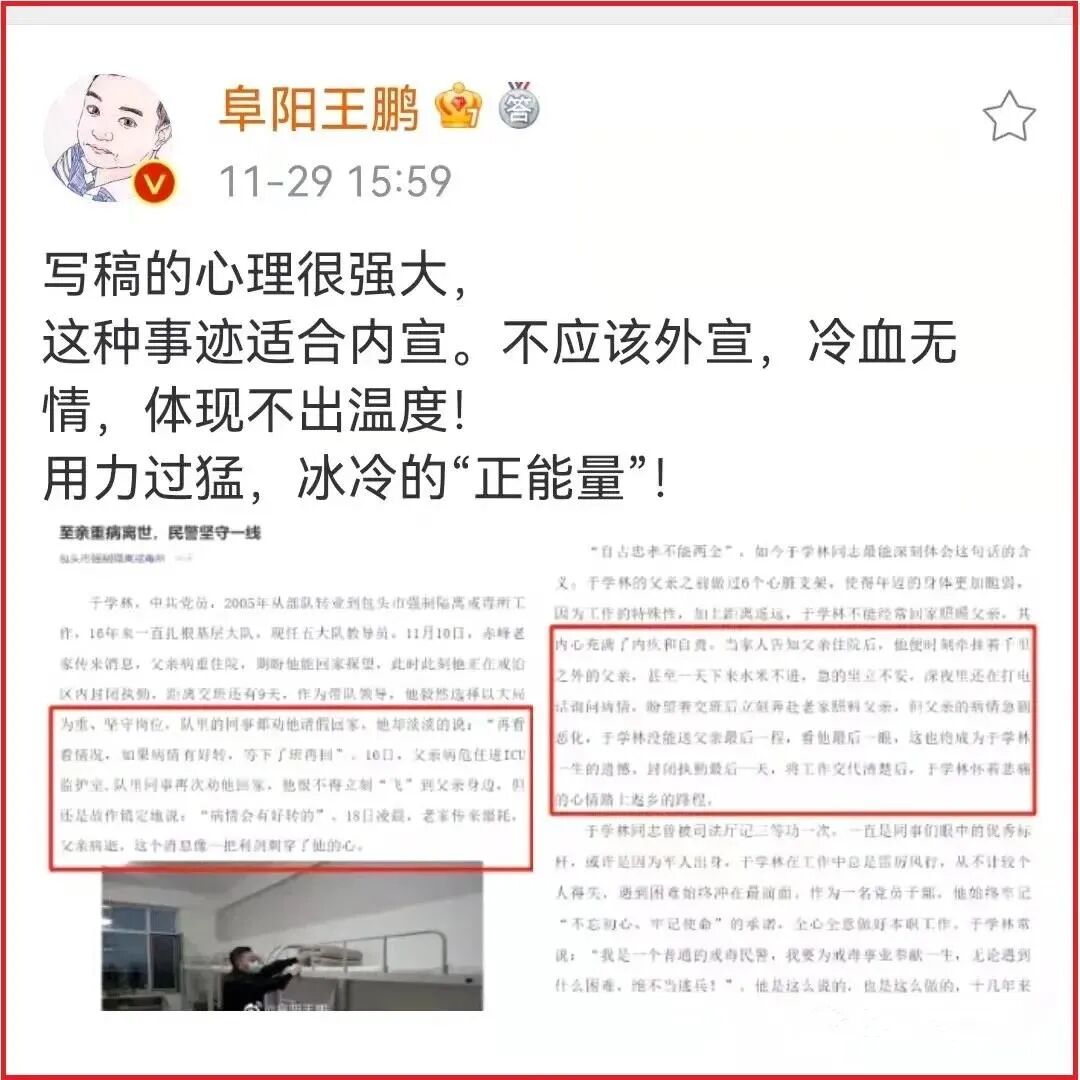 写稿的心理很强大,这种事迹适合内宣。不应该外宣,冷血无情,体现不出温度!
