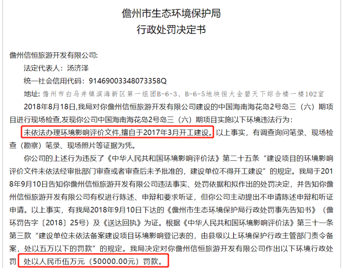 今天,一张关于恒大海花岛的行政处罚在网络传开来:要求海南海花岛2岛的39栋楼在10天内拆除!